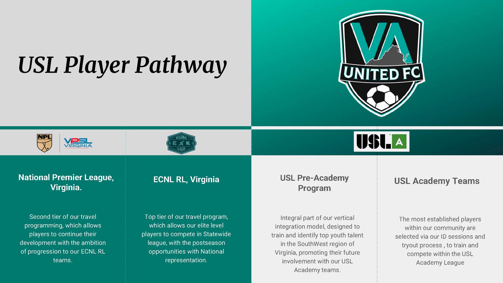 - Produce Players: Increasing both the number and quality of locally produced talents for USL Senior Teams, while developing world-class players able to compete at the highest levels.